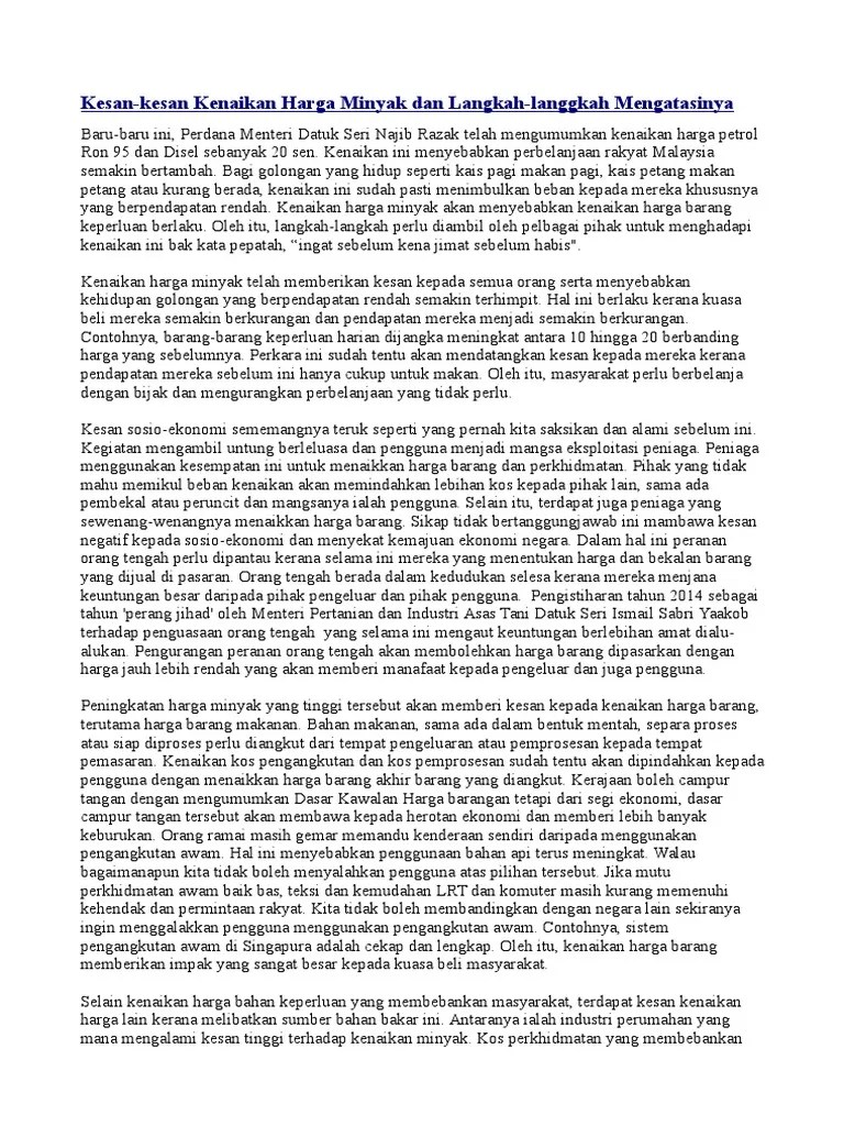 Karangan Kenaikan Harga Barang / Kesan Kenaikan Harga Barang Pdf